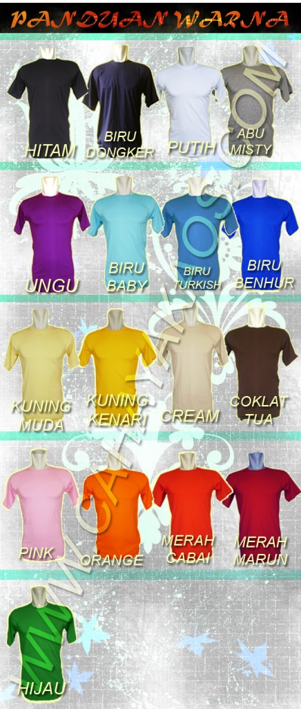 1. Spesifikasi : Warna, Ukuran, Model kaos, Jumlah Pesanan.